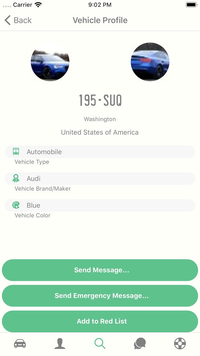 Vehicle drivers register their plate numbers and this plate number is then published in Platenger so other users can find it and send a message to that vehicle driver. To register a plate it must not have been taken by another user in that State.