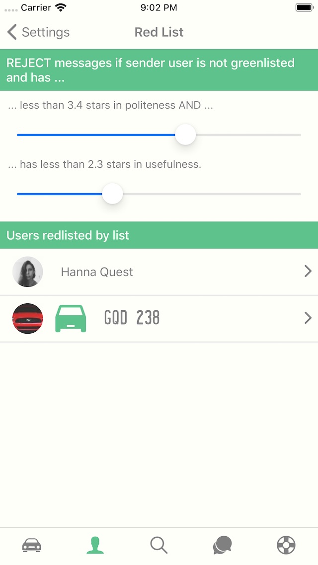 If you see a vehicle in an emergency or risk situation, you can send it an emergency message. It will be received by it's driver and also by it's driver's emergency contacts.
